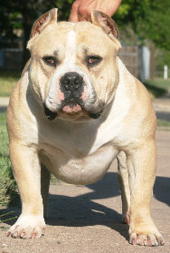 "Sway" is a 6th generation Texas Made production. He is 3x "Cai" and 4x "Platinum" and a great representation of what the "Platinum" & "Cairo" cross produces; a short, wide, compact body with an exceptional head structure. She is littermate sister to Grinch has been stamping that classic Texas Made look on her offspring. Be on the lookout for her future breedings.