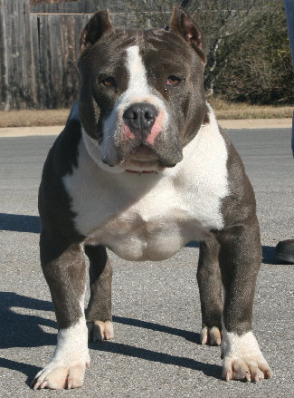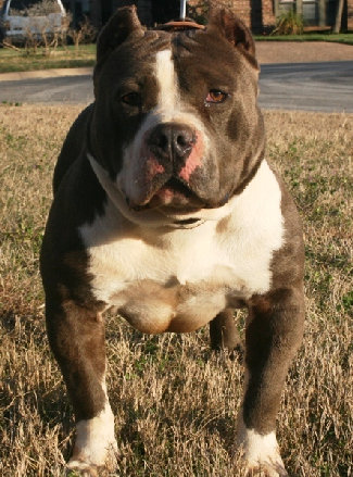 "Retro" is a off of Razors Edge's "Paddington's Bad Boy" aka "P Diddy"(75% Paddington) & Texas Made's "Costa Rica"(76% Knuckles). He is one of the heaviest bred "Gr Ch Knuckles" & "Gr Ch Paddington" dogs in the world. This foundation male will produce well with any strand of the Edge Line and he is available for stud to approved females only.
